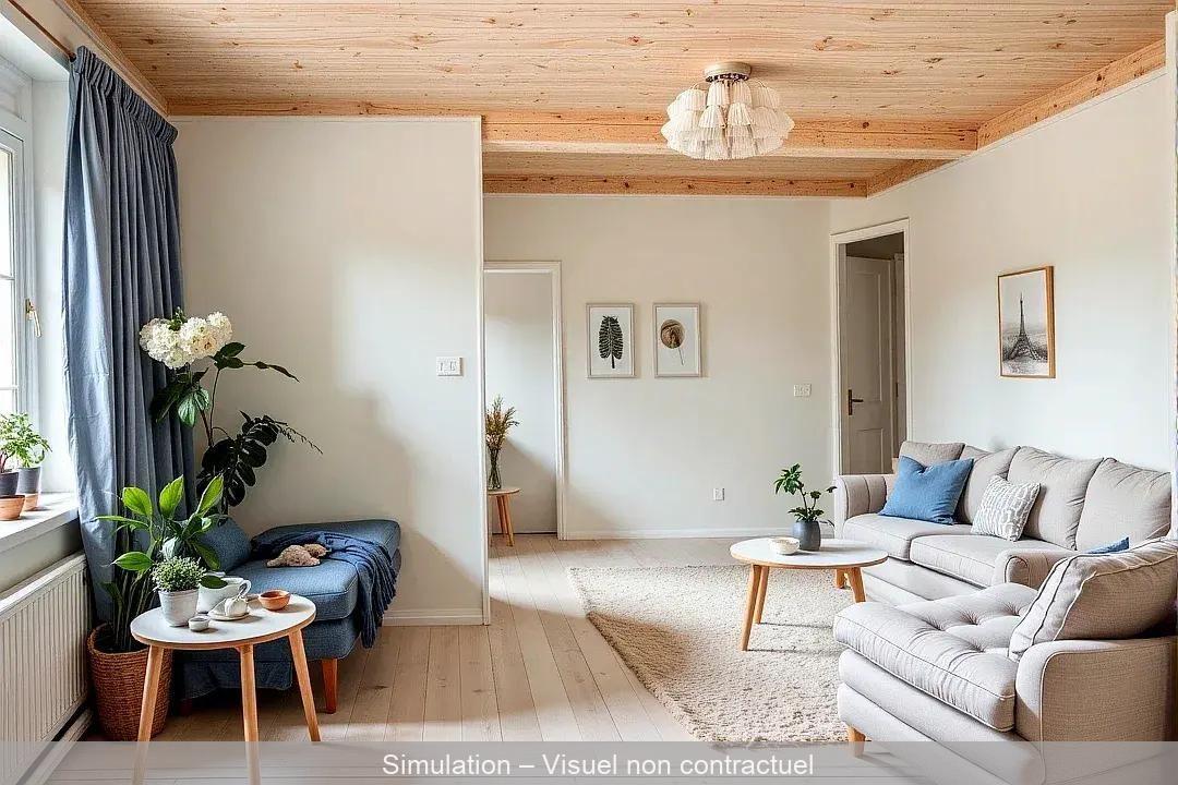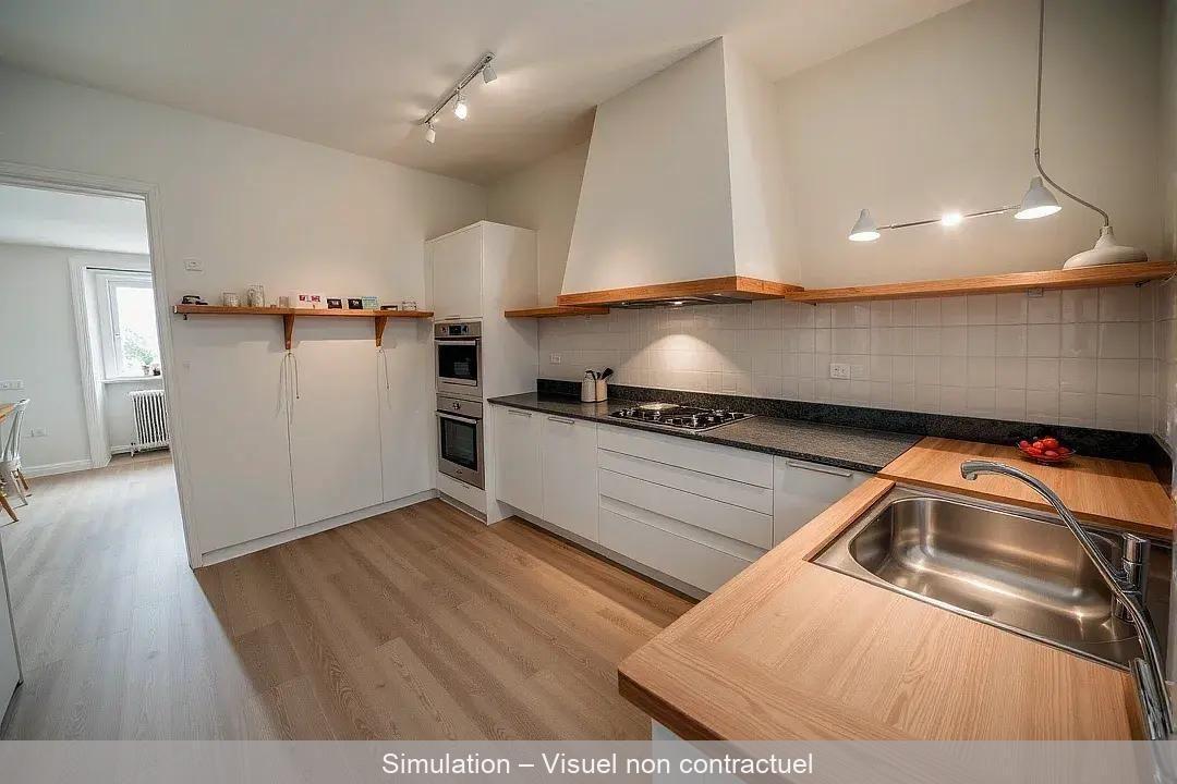 Elle comprend : entrée, séjour (20m²), cuisine indépendante (12.14m²), 3 grandes chambres (14.26, 15,70 et 12.92m²), salle d’eau et WC.