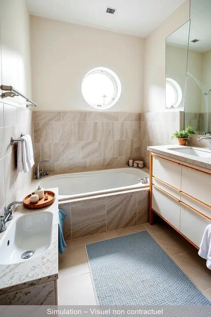 Les huisseries sont en PVC, double vitrage avec des volets bois. Le chauffage et l’eau chaude sanitaire sont fournis par une chaudière alimentée au gaz de ville.