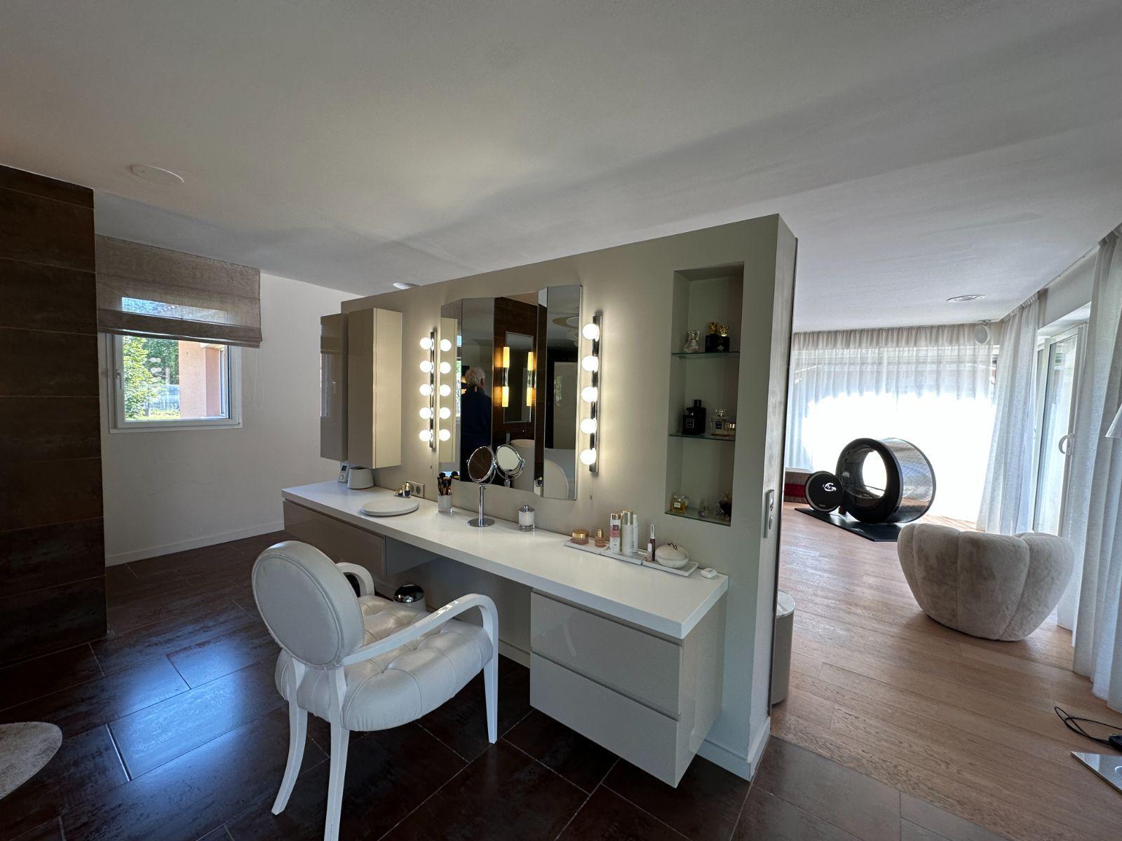 Les équipements sont de qualité, les peintures murales réalisées par un maitre de l’art. Au sol on trouve du parquet, du marbre ou du travertin. Elle bénéficie d’une aspiration intégrée. Le chauffage et le refroidissement sont assurés par une pompe à chaleur réversible.